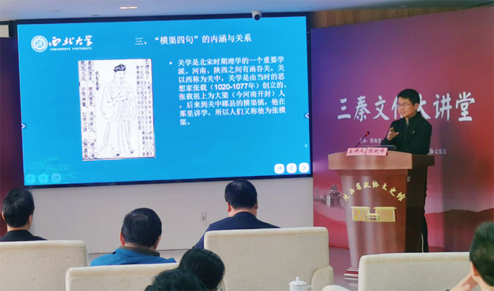 10月28日下午,由陕西省三秦文化研究会主办,秦学书院、各界导报社、陕西省政协文史馆承办的“三秦文化大讲堂”第十讲在陕西省政协文史馆成功举行。本期讲座主题为《躬行礼教,宋明秦人的内省精神》,由西北大学中国思想文化研究所陈战峰教授主讲,陕西省三秦文化研究会副会长权永生主持。来自高校、研究机构、机关企事业单位及社会各界的数十名听众到场聆听学习,现场学习氛围浓厚。