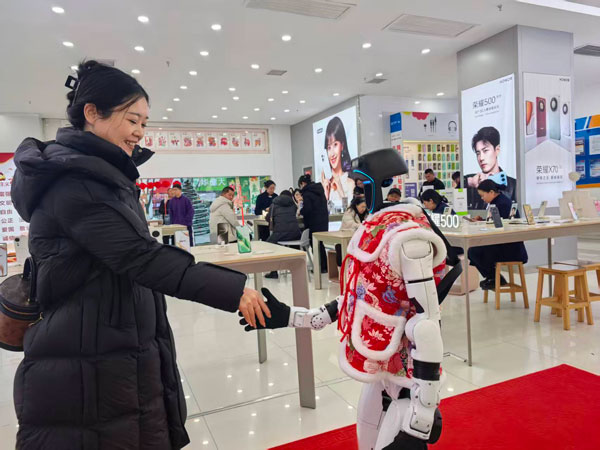 作为延安首个引入人形机器人的通信营业厅,这里不仅有“数字新员工”的硬核服务,更延续了“心级服务”的温度:机器人会识别老年客户的操作习惯,主动放慢语速、放大语音提示;遇到带孩子的家庭,还能切换“趣味模式”,通过互动问答科普5G小知识。