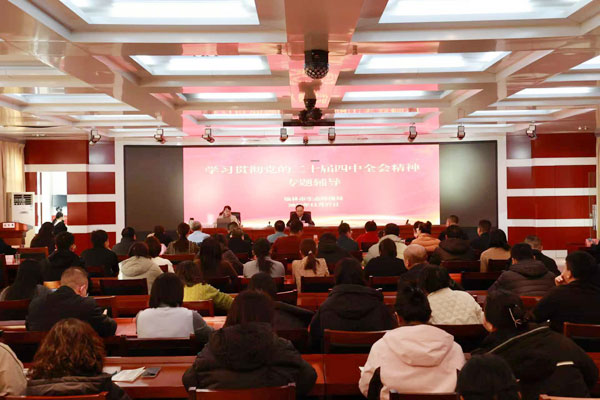 为深入学习贯彻党的二十届四中全会精神,切实把思想和行动统一到党中央决策部署上来,11月27日,榆林市生态环境局举办学习贯彻党的二十届四中全会精神专题辅导会,邀请市委理论讲师团成员、榆林学院马克思主义学院副教授李飒飒作专题辅导。局党组书记、局长柳志清主持会议并讲话,在家局领导、各科室、各下属单位负责人及各党支部党员干部共110余人参加了会议。