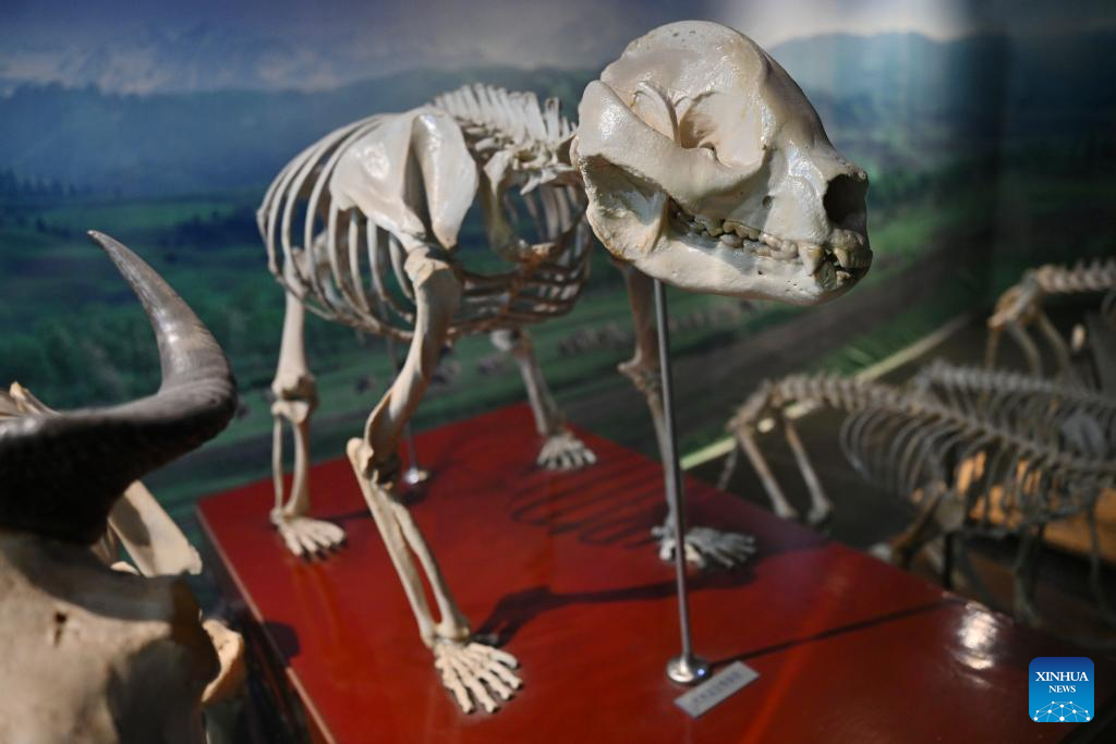 A giant panda skeleton specimen is pictured at the Animal Museum of the Northwest A&F University Exposition Park in Yangling, northwest China's Shaanxi Province, Oct. 26, 2025. (Xinhua/Li Yibo)
