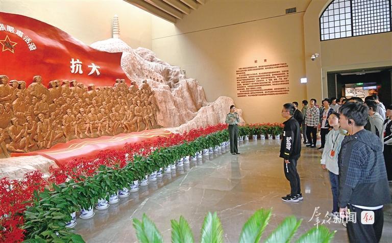 9月27日,西北工业大学的学生乘坐“到延安去——三秦学子圣地行”红色研学专列来到延安,通过“理论课堂+实景教学”等模式,在延安接受红色革命传统教育。图为9月28日,该校航海学院学生在中国人民抗日军政大学纪念馆参观学习。 通讯员 王德荣摄