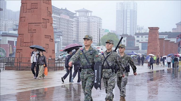 10月1日,武警陕西总队机动支队的官兵开展巡逻。 记者 甘甜摄