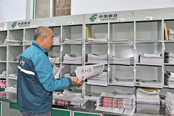 10月5日,中国邮政集团有限公司陕西省延长县分公司职工坚持开展收寄、投递等工作。 通讯员 王福建摄