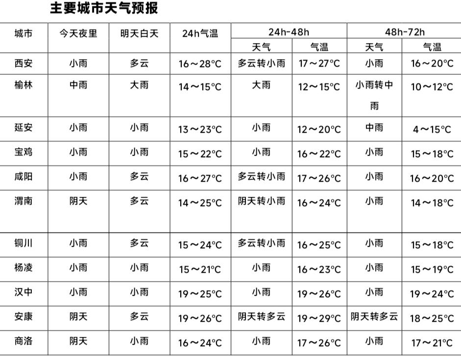 10月8日陕北中北部地区有中到大雨,榆林东部部分地方有暴雨,关中西部局地、陕南西部有阵雨或雷阵雨天气,伴有雷暴、短时强降水等对流性天气。陕北大部、关中部分、陕南西部、秦巴山区阵风6至7级,局地可达8级以上。假期返程需注意防风、防雨、防雷。