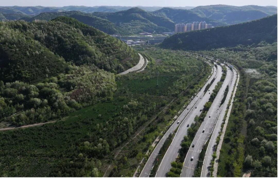 无人机视角下的延安满眼翠绿。新华社记者 张博文 摄