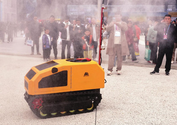 沐秦智能的“M200”农业无人车演示吸引众人参观。记者 马昭 摄