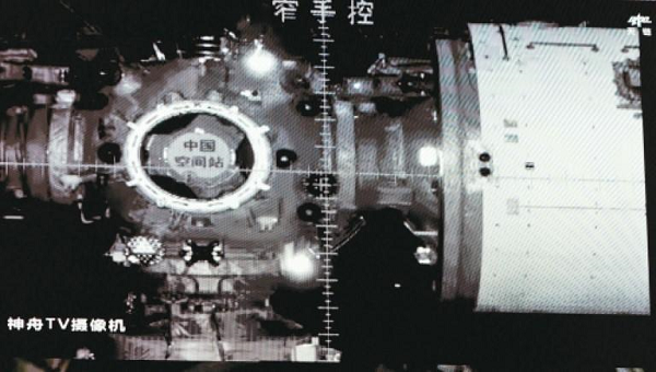 神舟二十一号载人飞船1日凌晨与空间站组合体完成自主快速交会对接,这是11月1日在北京航天飞行控制中心飞控大厅拍摄的交会对接实时画面。新华社记者 金立旺 摄