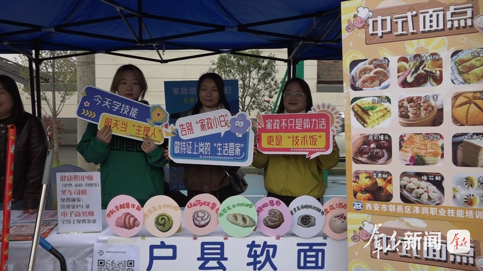 招聘会现场,近30家企业的招聘展位前都围满了咨询的居民。中国电信的展位前,工作人员正细致地向求职者介绍客服、运维等岗位的薪资待遇和工作时间;鄠邑区首龙酒厂的招聘海报上,车间操作、包装检验等岗位信息清晰明了,吸引了不少有本地就业意愿的村民驻足;朱家商诚则针对家政服务、超市导购等岗位进行招聘,灵活的工作时间让不少宝妈群体格外关注。
