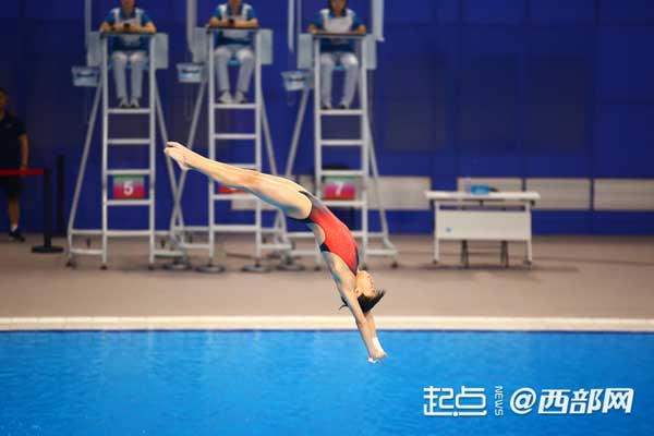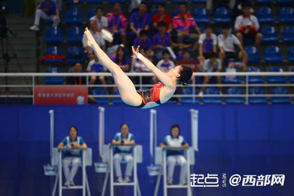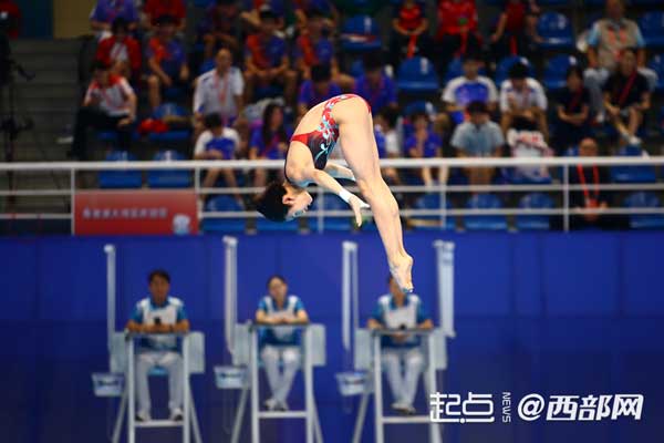 11月8日上午,第十五届全国运动会跳水女子10米跳台半决赛在广东奥林匹克中心举行。陕西队崔家溪在五轮过后,以355.55分的成绩排名第四,成功晋级决赛。陕西队王韵晗排名第14无缘决赛。