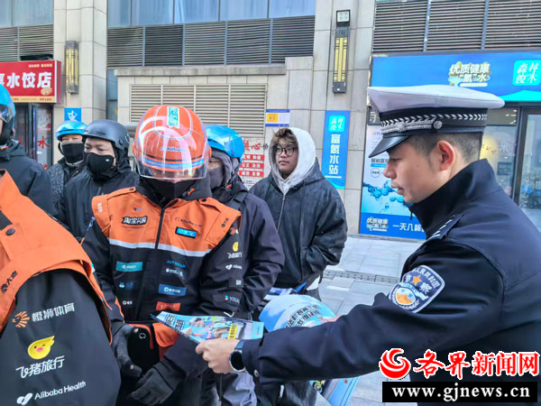 11月20日,西安公安交管新城大队朝阳门中队走进“饿了么—淘宝闪购”外卖配送站点,开展交通安全宣传活动,为穿梭在城市街巷的外卖骑手送去“交通安全课”。