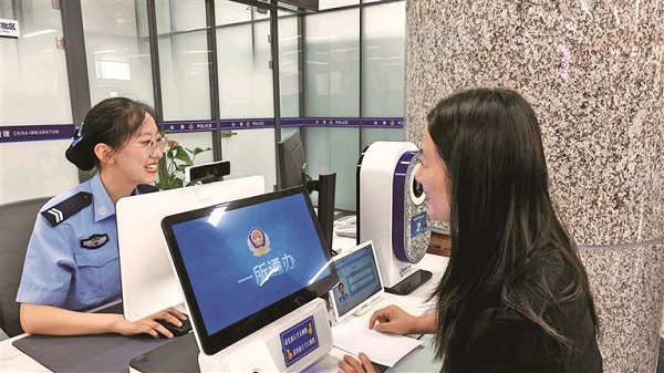 八月五日,在西安市政务服务中心,西安市公安局工作人员为市民办理业务(资料照片)。记者 霍海澎摄