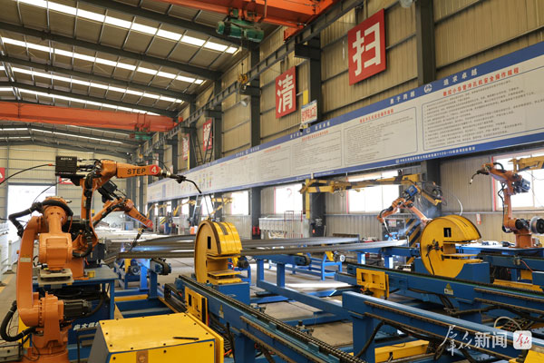 为积极培育新质生产力,西成客专陕西公司深化数字技术应用,以科技引领推动“延榆铁路智能建造2.0”落地。中铁五局以“信息化、数字化、智能化、绿色化”为导向,全面推进“系统代脑、机器代工”生产模式,引入多套先进智能装备,实现从材料到成品的全流程智能化管控。截至目前,延榆高铁10标项目智能化钢构件加工中心峰值月产能达2300吨,最大存储能力2500吨,展现集约、高效、绿色的现代工程能力。