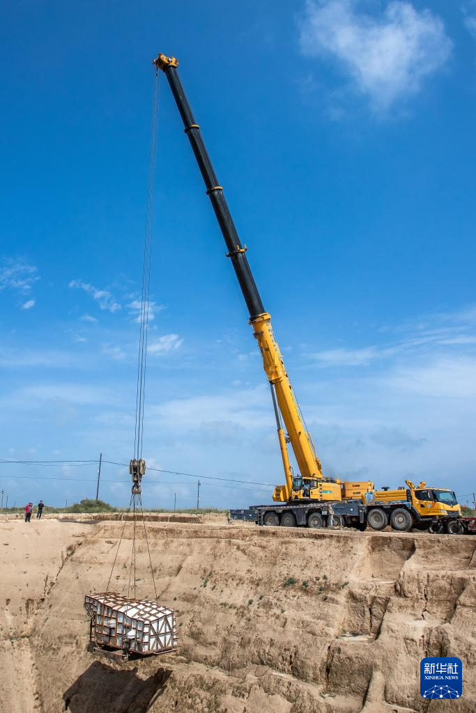 陕西省考古研究院寨沟遗址考古队在陕西清涧瓦窑沟墓地M1号墓葬提取马车(2025年9月13日摄)。