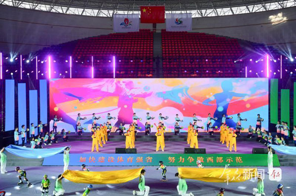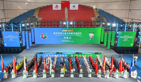 闭幕式上播放了本届运动会的精彩回顾短片,随后上演了《商山洛水 康养之都》《排球欢歌 健身交响》等全民健身展演节目,生动展现了三秦大地人民群众的健康风采与昂扬面貌。