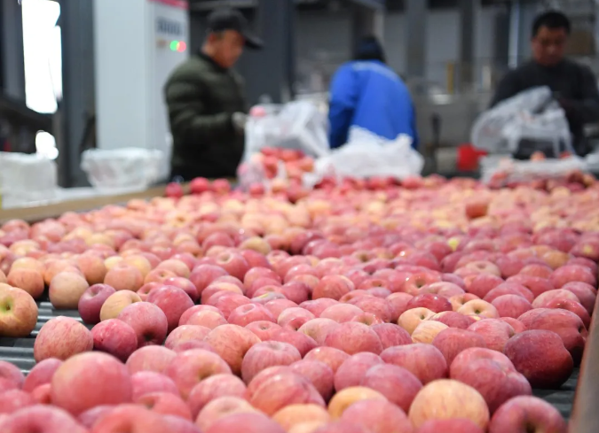 延安市洛川县一家果业企业工作人员在生产车间分拣苹果。新华社记者 张博文 摄