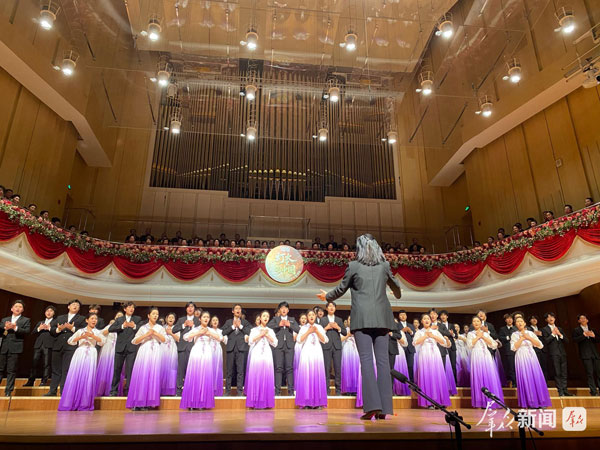 12月27日,夜幕下的西安音乐学院交响厅灯火通明,歌声如潮。由陕西省文化馆主办,陕西省合唱协会协办的“灯火里的中国——三秦四季 大地欢歌”2026陕西省群众合唱新年音乐会,在这里温暖上演。来自陕南、陕北、关中地区的9支合唱团、近700名演员用歌声唱响对家的眷恋、对国的热爱、对美好生活的向往。