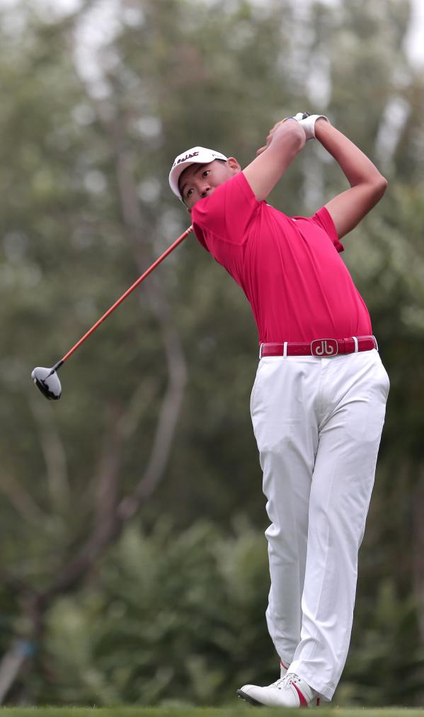 2013年9月9日,香港队选手黑纯一在比赛中。当日,在辽宁省沈阳市进行的第十二届全运会高尔夫球男子团体比赛中,香港队最终以851杆的总成绩夺得亚军。新华社记者姚剑锋摄