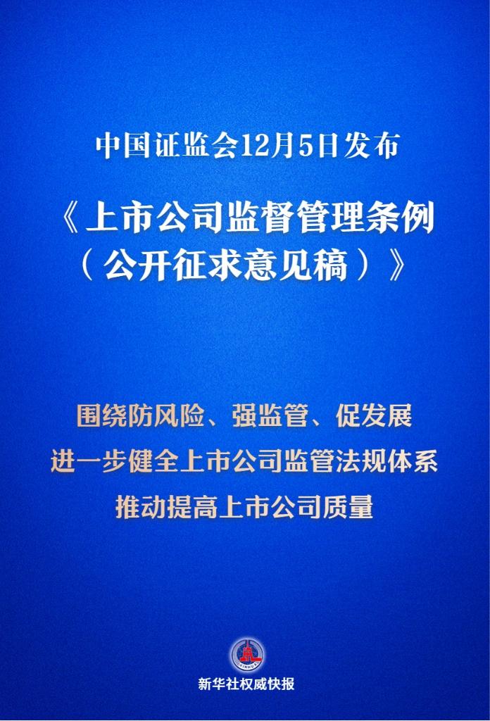 新华社北京12月5日电(记者刘羽佳)中国证监会5日发布《上市公司监督管理条例(公开征求意见稿)》,我国将迎来首部专门的上市公司监管行政法规。
