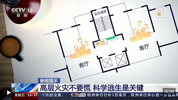 同楼层发生火灾:这种情况相对危险,逃还是不逃,主要看烟雾情况。