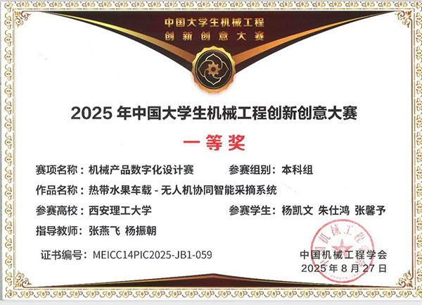 日前,从中国大学生机械工程创新创意大赛全国总决赛传来捷报:西安理工大学国际工学院学子研发的“热带水果车载——无人机协同智能采摘系统”,从全国2571件参赛作品中脱颖而出,斩获全国一等奖。这套采摘“黑科技”,不仅为破解热带水果采摘难题提供了可落地的智能化方案,更为科技赋能产业发展写下生动注脚。