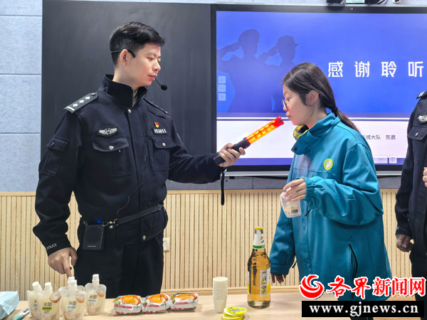 此外,活动还设置了多项互动环节,增强宣传趣味性与参与度。其中,食物“假醉”检测活动深受学生欢迎,民警现场准备多种常见食品,学生食用后通过呼气式酒精检测仪进行检测,直观了解哪些食物可能会检测出酒精,进一步丰富交通安全知识储备。同时,趣味问答环节同步开展,围绕“如何正确佩戴安全头盔”“乘坐小汽车最安全的位置是哪里”等实用问题,学生们踊跃举手、积极作答,在轻松愉快的互动氛围中,将“一盔一带”“知危险、会避险”等交通安全理念牢固树立于心。