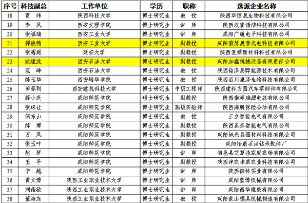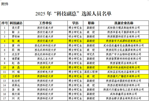 各界新闻网讯 近日,咸阳市委组织部 、咸阳市委科技工委联合发布关于选派专家教授担任咸阳企业“科技副总”的名单,来自各高校院所的专家教授,将担任合作企业的“科技副总”并走上岗位。本次共有8位“科技副总”来到高新区企业。他们分别来自西安交通大学、长安大学、陕西科技大学等多所高校,在新材料、智能制造、人工智能等高新技术领域有着扎实理论基础。