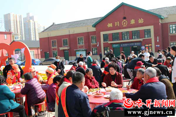 10月28日,青年路街道在铜川东站广场举办“情暖重阳 孝润社区”亲邻宴活动,通过文艺表演、暖心赠礼、热汤暖宴等形式,将节日的温情和关怀送到老人们的心中。特别值得一提的是,街道下辖三个社区分别为老人奉上2道菜肴,并让老人喝上热腾腾的羊汤。五一社区党委书记郭庆云则亲自掌勺,让60余名老年人品尝到了她的烹饪手艺。图为“情暖重阳 孝润社区”亲邻宴活动现场。
