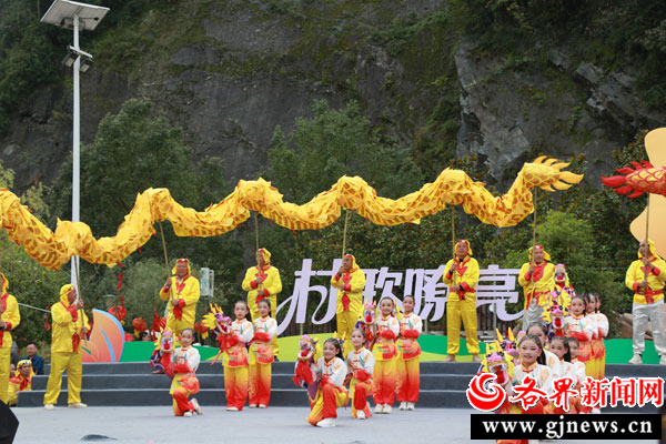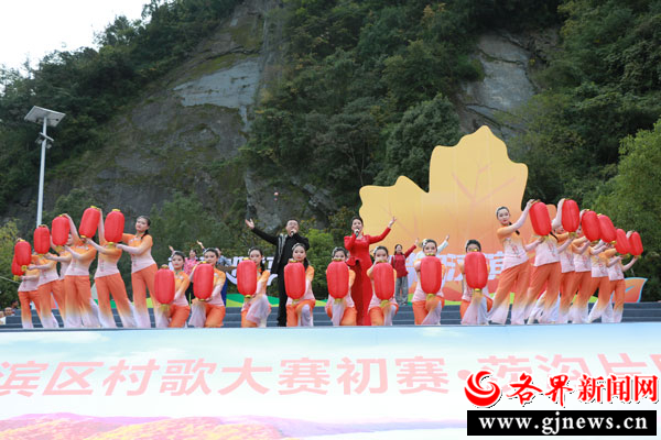 金秋时节的茨沟镇,万亩红叶、层林尽染。伴随着欢快的锣鼓声,茨沟镇、五里镇、谭坝镇三支队伍轮番登场,不仅献唱原创村歌,还展示特色产业、优质资源与地方文化,纷纷亮出独具特色的“看家绝活儿”。歌伴舞《村歌飞扬》《松坝谣》《幸福歌儿唱起来》唱出了乡亲们的幸福生活;以修建八一水库为背景的安康歌谣《我来了》引发会场共鸣;民俗表演《龙的传人》则将节目推向高潮。舞蹈、乡村 T 台秀、民俗表演、八岔戏等节目,或以传统幽默诙谐的风格,或以深情叙述的方式,展现乡村新生活,为观众献上一场别开生面的视听盛宴,现场欢呼声此起彼伏。