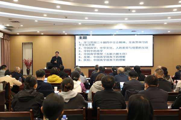 李忠民重点围绕全面学习贯彻党的二十届四中全会精神和习近平文化思想作辅导授课,系统讲述了中国商学以及学科中的商学,深入阐明了中国话语体系对商学发展的指导意义,科学剖析了中国商学模型的核心要义与发展路径,以中国发展道路与现代医院管理为例进一步解读了中国商学的实际运用。