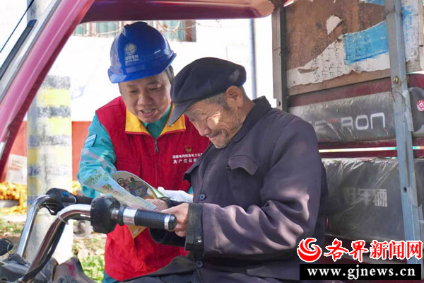 活动当天,队员们主动靠前,精准聚焦辖区内在建居民房屋、各类临建设施及施工场地。在工地围墙、在建房屋外墙等醒目位置,张贴《安全隐患告知书》,用简洁明了的语言提示潜在风险。同时,队员们挨家挨户、深入工地,将一本本图文并茂的电力设施保护条例宣传手册递到村民和施工人员手中,面对面进行耐心讲解。“师傅!这个杆塔、拉线基础周围不能取土或挖坑,会影响电杆的稳固。”队员们结合宣传手册上的案例,重点强调了在架空电力线路保护区内违章建房或施工的巨大危害,以及在杆塔、拉线基础规定范围内取土、打桩、开挖等行为对电网安全稳定运行的威胁。用通俗易懂的方言,将专业的电力法规转化为接地气的安全常识,让村民们听得懂、记得住。