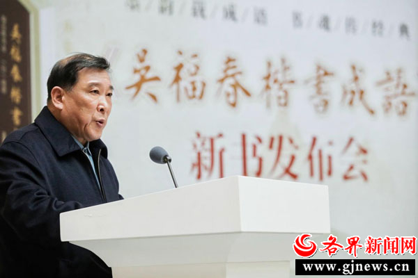 活动伊始,主持人宣读了中国人民解放军原兰州军区司令员李乾元发来的贺电。贺电称赞“吴福春先生的楷书端庄大气、笔法流畅、质朴古雅”,《吴福春楷书成语》成功将书法艺术与成语文化相融合,探索出了一条弘扬传统文化的新路径。
