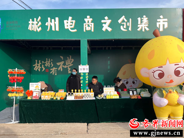 彬州市精准把握罗店村柿子园爆火带来的流量机遇,在村头搭建起热闹的供销集市大棚和农特产品展示平台,以特色摊位集中推介彬州优质农产品。