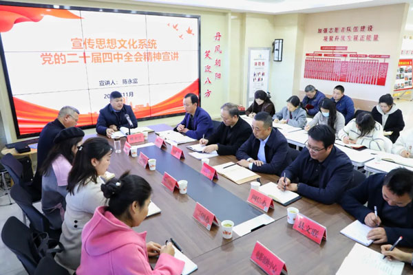 11月25日,丹凤县宣传思想文化系统党的二十届四中全会精神宣讲会举行。县委常委、宣传部部长陈永富作专题宣讲报告。
