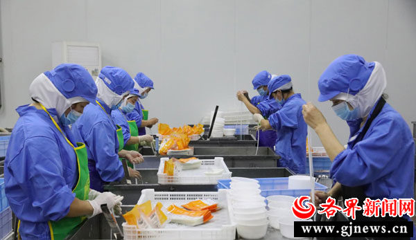 在五里工业集中区富硒食品产业园,悠源公司几条生产线开足马力生产,全力以赴备货。工作间里,调味师张萍一丝不苟地称量、拌料。根据不同产品,将食盐、白糖、味精等各种调味品严格按比例加入。