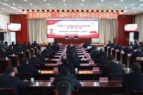 11月27日,商南县召开党的二十届四中全会精神宣讲报告会。市委宣讲团成员、市纪委副书记、监委副主任贺发涛受邀作专题报告。县委副书记李军主持并讲话。