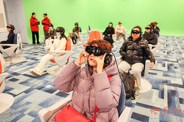 “这不仅是技术的革新,更是对文化传播方式的重构。”在全球首家无界XR影院,记者们佩戴180克轻量化头显观看《梦回延安》、《玄奘与龟兹》、《石峁鹰熊》片段,不但能身临其境感受电影场景,专用座椅还可以实现360度转动,实现主动交互性体验。据工作人员介绍,座椅的操作像平衡车的使用,观演者可以自主操控座椅的移动方向,比如身体前倾座椅就会跟着身体方向一起移动。