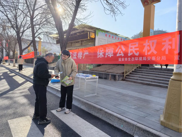 为大力弘扬宪法精神,增强群众法治意识,安塞分局以“维护宪法尊严,保障公民权利”为主题在政府广场开展主题宣传活动。通过悬挂横幅、发放资料等形式,向居民普及宪法生态文明条款及《中华人民共和国环境保护法》《中华人民共和国大气污染防治法》等知识,积极倡导绿色出行、垃圾分类、节约资源等低碳生活方式,引导群众自觉履行环保责任,凝聚“尊崇宪法、守护生态”的社会共识。