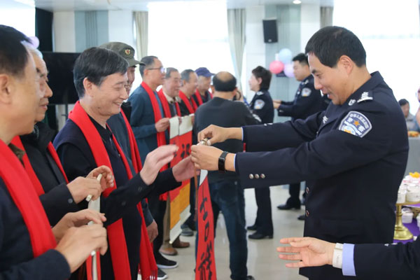 活动中,分局土门派出所“银发警务”服务队成员受邀参与。该服务队成立于2025年11月,由12名退休民警志愿者组成,是分局推进社区警务改革、强化基层治理的创新举措。这些“银发卫士”通过反诈宣传、治安巡逻等工作,为辖区安全注入丰富的经验和力量。“银发警务”服务队为退休民警搭建了发挥余热的平台,这既是爱警暖警行动的延伸,也是“老有所为、警魂传承”的生动体现。