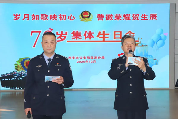 辞旧迎新暖意融,警营关怀显初心。12月29日,西安市公安局莲湖分局举办了一场主题为“岁月如歌映初心·警徽荣耀贺生辰”的集体生日会,为分局70岁退休民警送上专属祝福。此次活动是分局党委深入落实公安政治工作“八大行动”,贯彻爱警暖警举措的具体实践,以组织关怀的“温度”,彰显政治工作的“力度”,让组织关怀直抵民警心田。