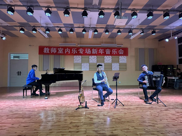 冬日暖阳融情韵,丝竹雅乐贺新岁。12月30日,以经典曲目演绎与民族音乐融合为特色的新年音乐会在榆林学院艺术学院小剧场温情奏响。榆林学院艺术学院教师高孚嘉、刘毅、韩昱拓三位博士联袂登台,以《一步之遥》《赛马》《山丹丹花开红艳艳》等十二首经典作品,为现场观众献上了一场兼具国际风情与民族底蕴的音乐盛宴。