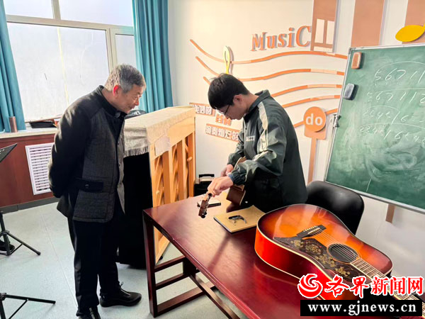 走进神木市老年大学吉他教室,悠扬的旋律此起彼伏。老师正指导学员们进行和弦训练。他们眼神专注,手指在琴弦上移动,其中不少学员是零基础入门,但在老师的耐心教导下,已经能弹奏出简单的曲目。