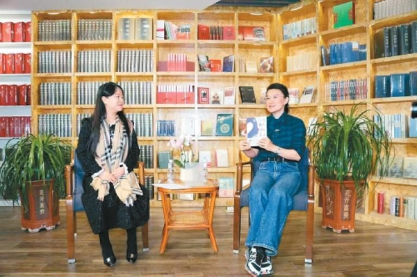 董倩(右)讲述其著作《每一次抵达,终有意义》。