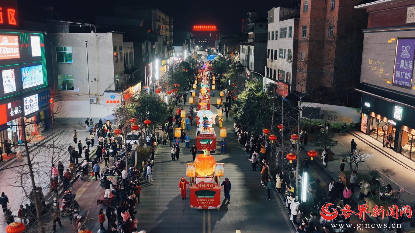傍晚六点半,随着激昂的锣鼓声响起,火亭子巡街表演拉开帷幕。在指挥车的引领下,300余人组成的巡游队伍浩浩荡荡走上街头,犹如灯火巨龙点亮绵长街道的每一处夜色。方阵中,《耀州瓷韵》以倒流壶造型展现千年窑火技艺,《坐虎针龙》尽显药王孙思邈悬壶济世的千古传奇,更有以耀州携手国内航空头部企业联合研发的首架大型固定翼无人机“红色耀州”为原型打造的《低空经济》等创新主题惊艳登场,燃爆元宵佳节。