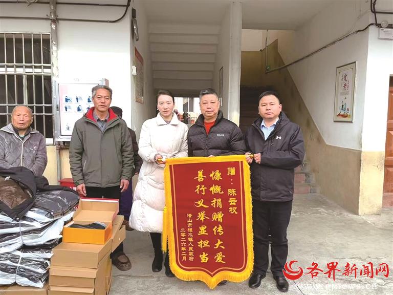 在带领企业发展的同时,陈云权始终没有忘记回馈社会,他的公益之路可追溯至2010年。那一年,他回到老家潜山乐明村,看到村里的老人生活清苦,心里很不是滋味。从那时起,他每年给村里70岁以上的老人发放生活补贴,从开始的每人200元到现在的每人1000元,一坚持就是十几年。