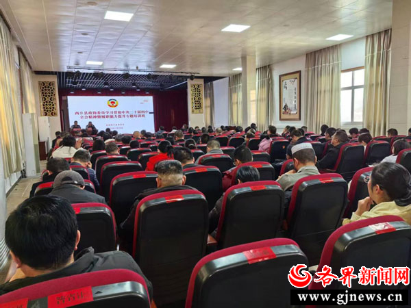 各界新闻网讯(记者 谢昊天 通讯员 冀华谋)12月18日,西乡县政协举办学习贯彻中共二十届四中全会精神及委员履职能力提升专题培训班,全体县政协委员以及政协机关干部参加培训,县政协主席朱小平出席,副主席韩武君主持。