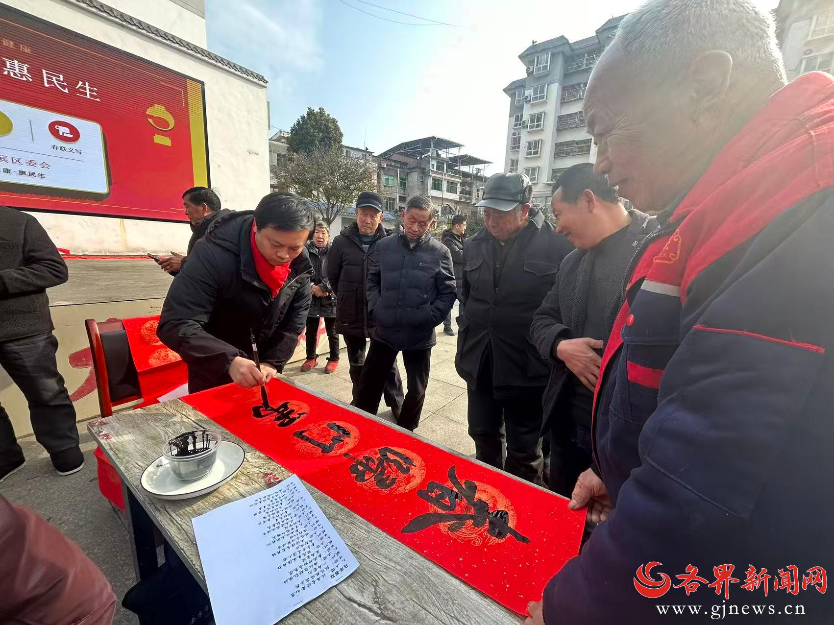 活动现场暖意融融、墨香四溢。盟员书法家们铺纸研墨、挥毫泼墨,一幅幅寓意吉祥的春联跃然纸上,既有“骏马踏春开锦绣,宏图展志拓新程”等对马年新春的美好祝愿,也寄托着对乡村振兴的殷切期盼。群众围聚挑选,脸上满是笑容,氛围欢乐祥和,现场共书写赠送春联150余副。