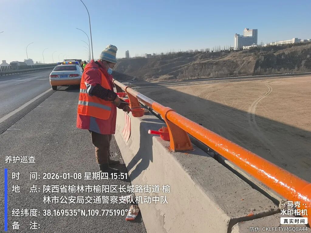 为持续做好赛事保障工作,2026年1月以来,榆林绕城快速干道管理段以榆溪河特大桥为重点,进一步推进路域环境整治。加强巡查,落实专人保洁,及时维修更换破损、褪色的防眩板,并利用大桥东西两侧的监控系统,实时监测桥梁运营状态。此外,通过安装轻量化监测系统,实现对桥梁关键参数的实时感知、智能分析与风险预警,进一步提升了桥梁管护效率和行车安全。
