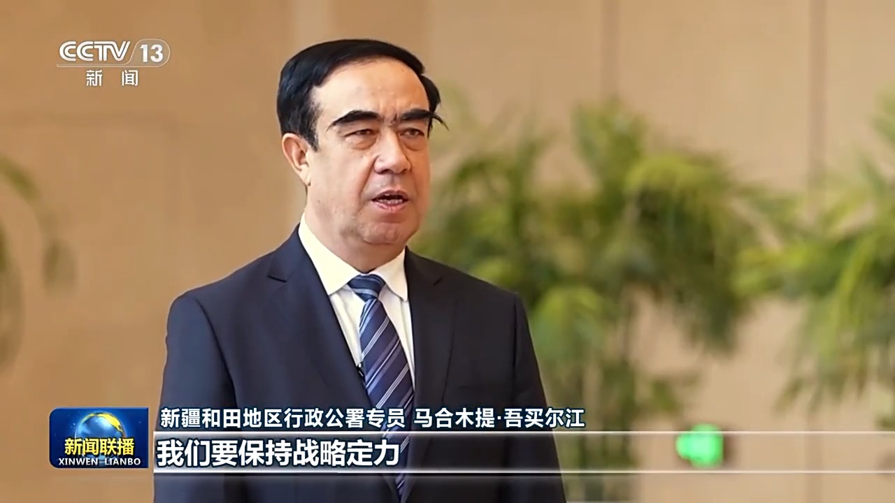 新疆和田地区行政公署专员 马合木提·吾买尔江:习近平总书记的重要讲话鼓舞人心、催人奋进。我们要保持战略定力,增强必胜信心,依托资源禀赋和产业优势,做大做强有机果蔬、新能源、防沙治沙及全域旅游等产业,在发展经济的同时稳步提高人民生活品质,为推进中国式现代化新疆实践贡献力量。