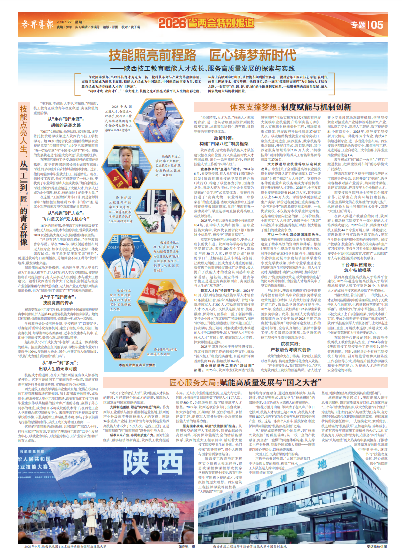 这些多元而精彩的成长轨迹,共同印证了“三百六十行,行行出状元”的古训,更彰显了陕西技工教育“以学生发展为中心、以就业为导向、以技能为核心、以产业需求为目标”的育人成效。