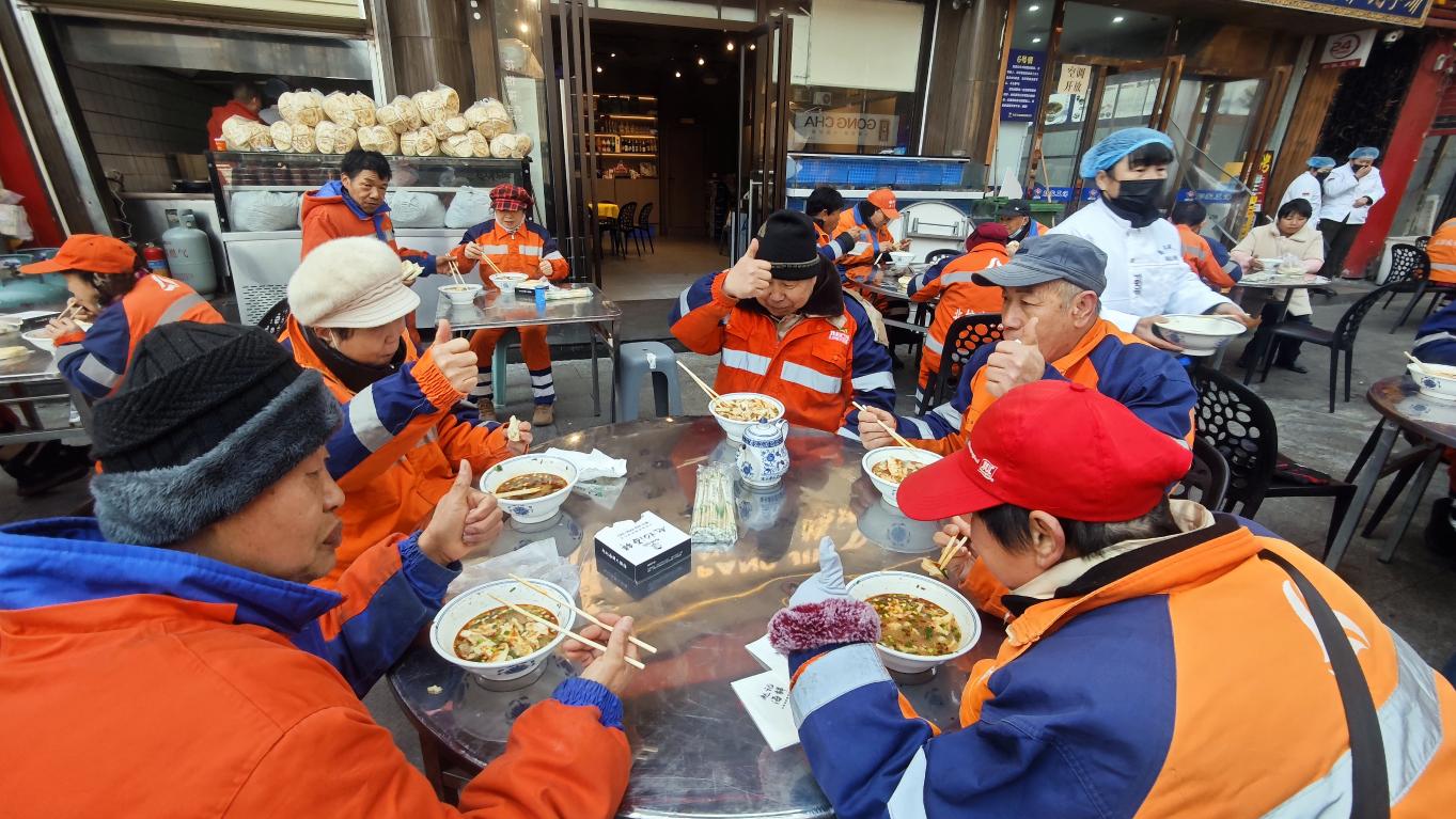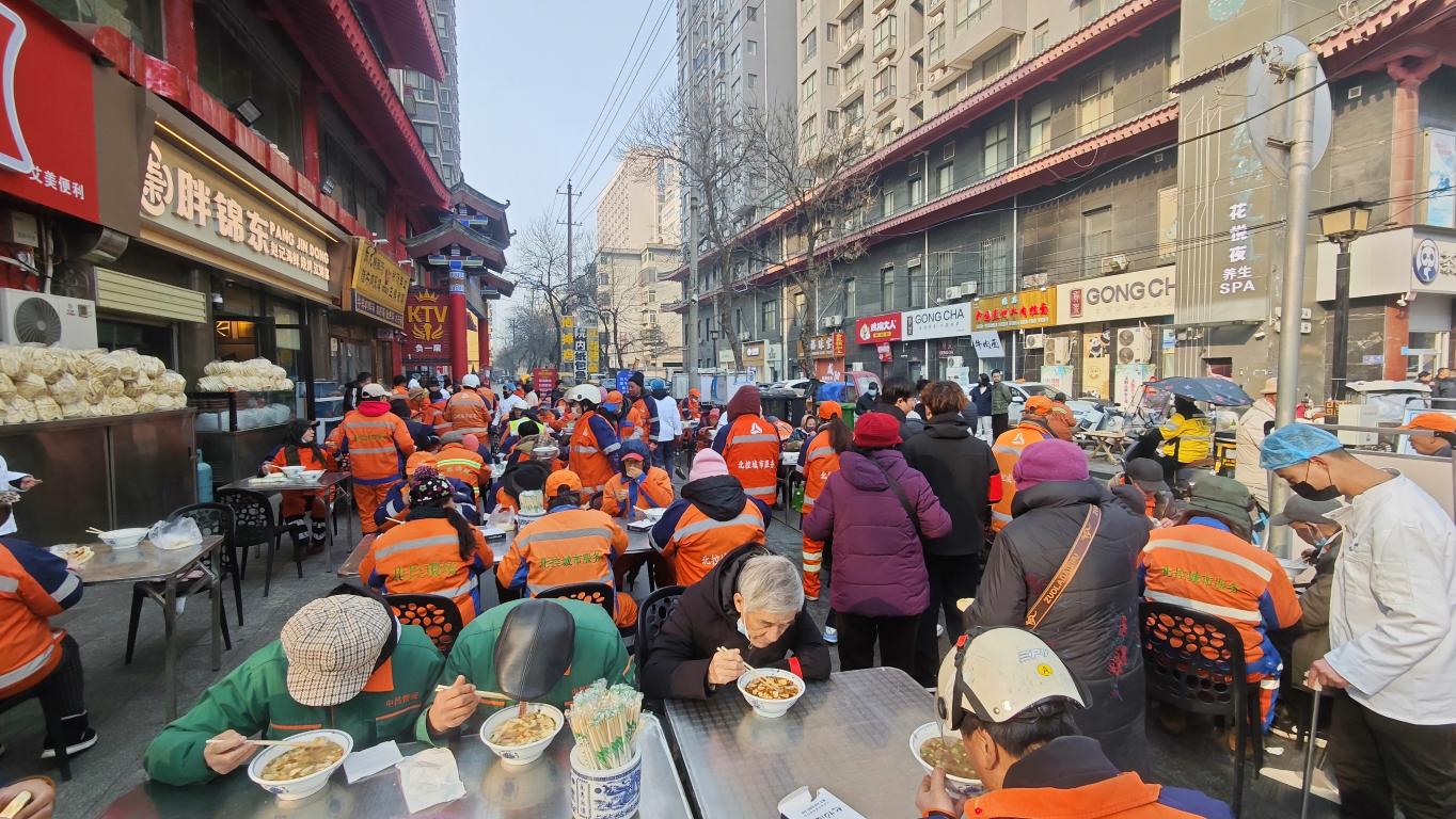 此次万人牛杂宴由爱心商家胖锦东——赵记海鲜老板赵卫涛牵头举办,“借着腊八新春的契机,就是想让更多人尝尝咱渭城的特色美食,感受咸阳老街的烟火气,好好宣传宣传家乡!”赵卫涛说,看着市民游客络绎不绝,还有各部门全力保障活动顺畅开展,既热闹又暖心,也期待更多人走进渭城,逛老街、品美食,感受家乡的年味与温度。